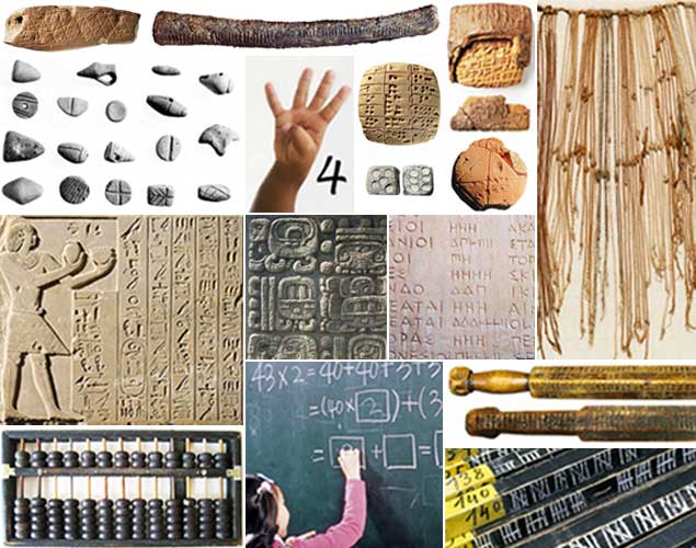 abstract concepts from notches in sticks, images and symbols, to complex mathematical notation